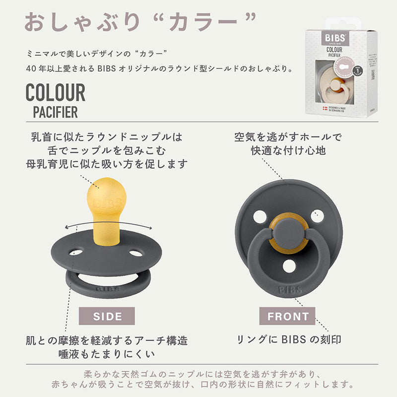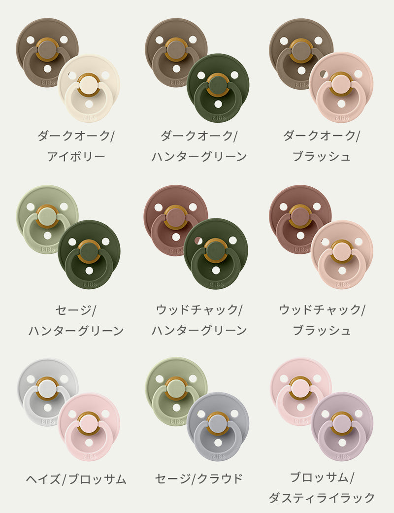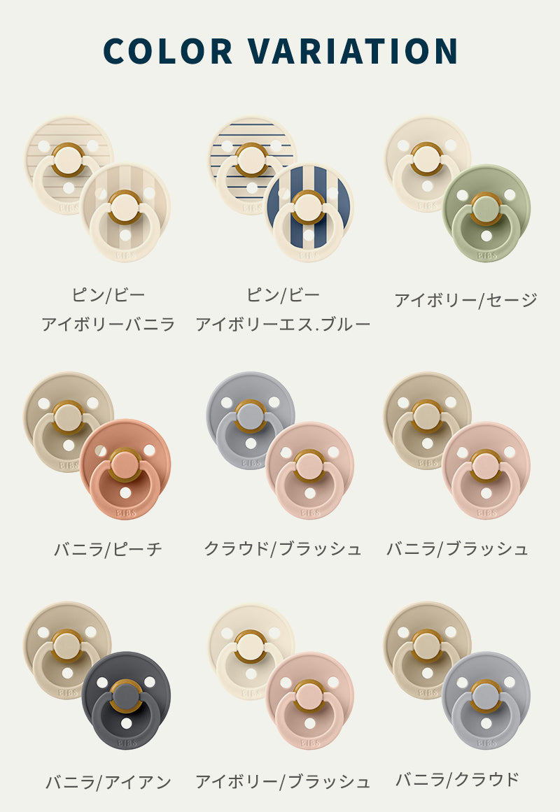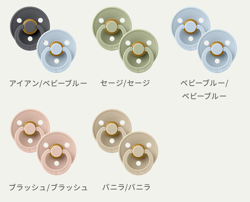 ※メーカー推奨使用期間として衛生上の理由によりbibs 天然ゴム製のおしゃぶりは4~6週間ごとにお取り替えください。