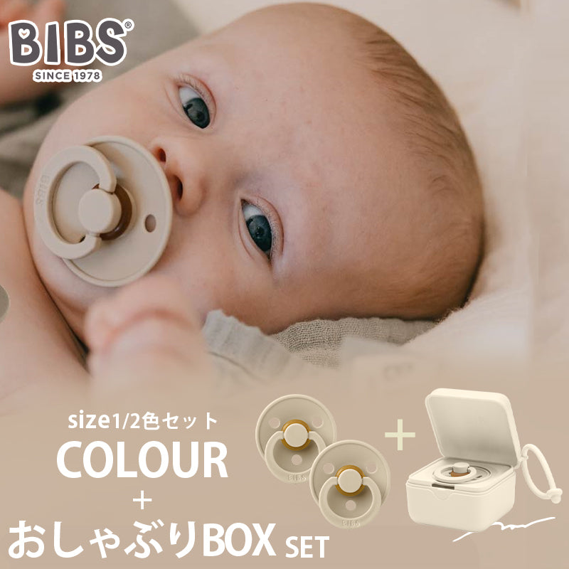 おしゃぶりBOXセット ビブス (BIBS) カラー 2色セット size1 + おしゃぶりBOX