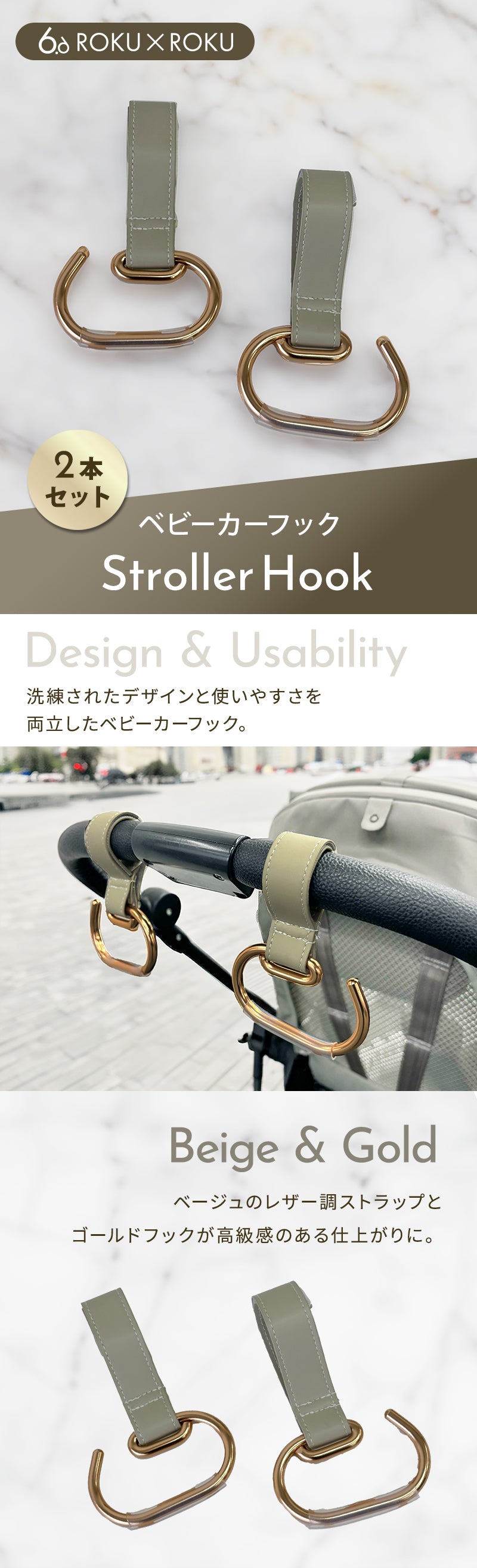 ろくとろく ストローラーフック ベージュゴールド ベビーカーフック