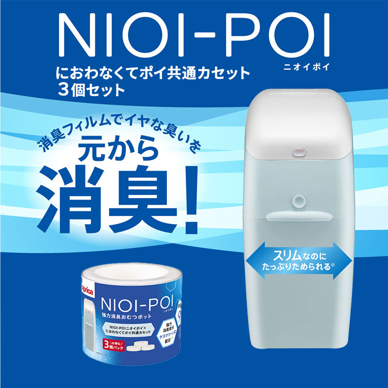 アップリカ 強力消臭おむつポット ニオイポイ (カセット1個付) + におわなくてポイ共通カセット (3個パック) セット
