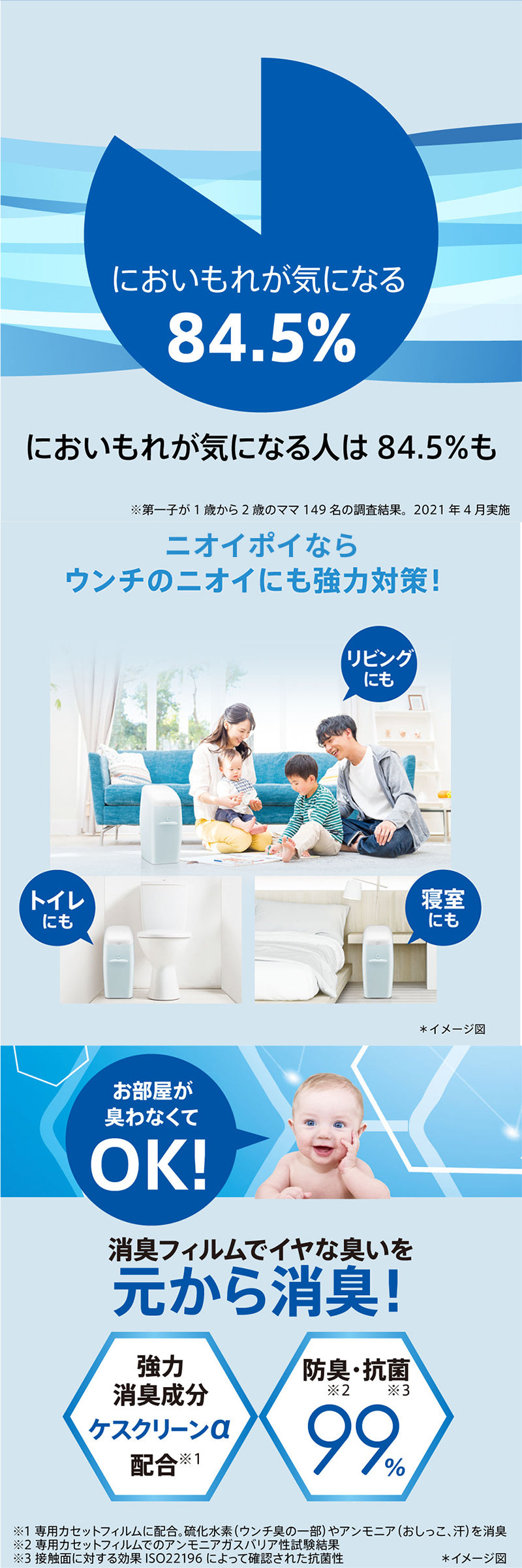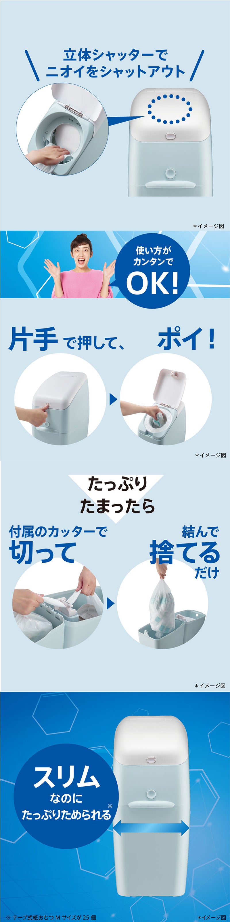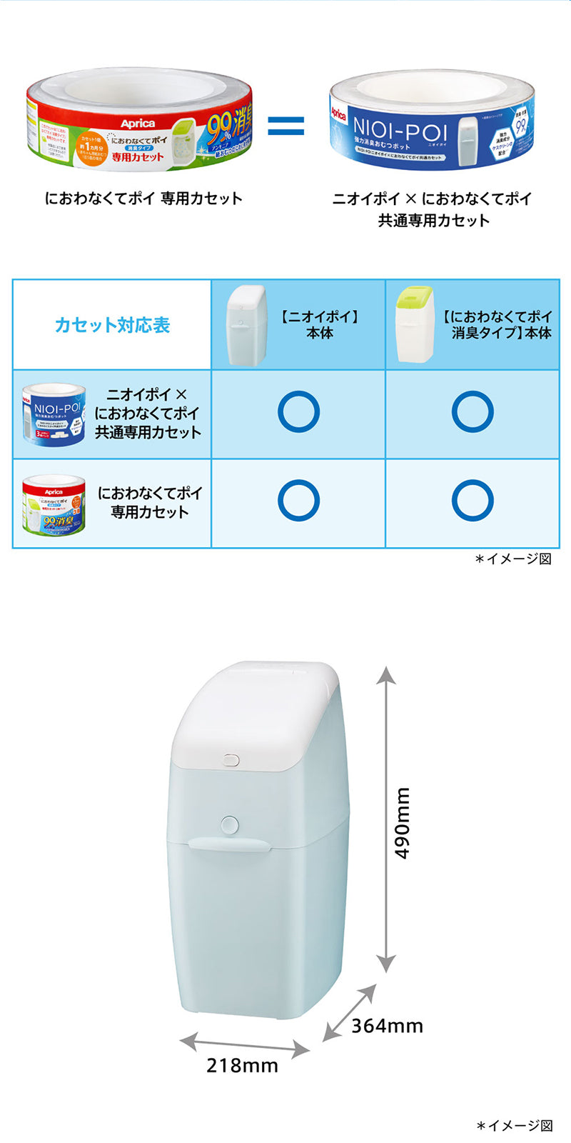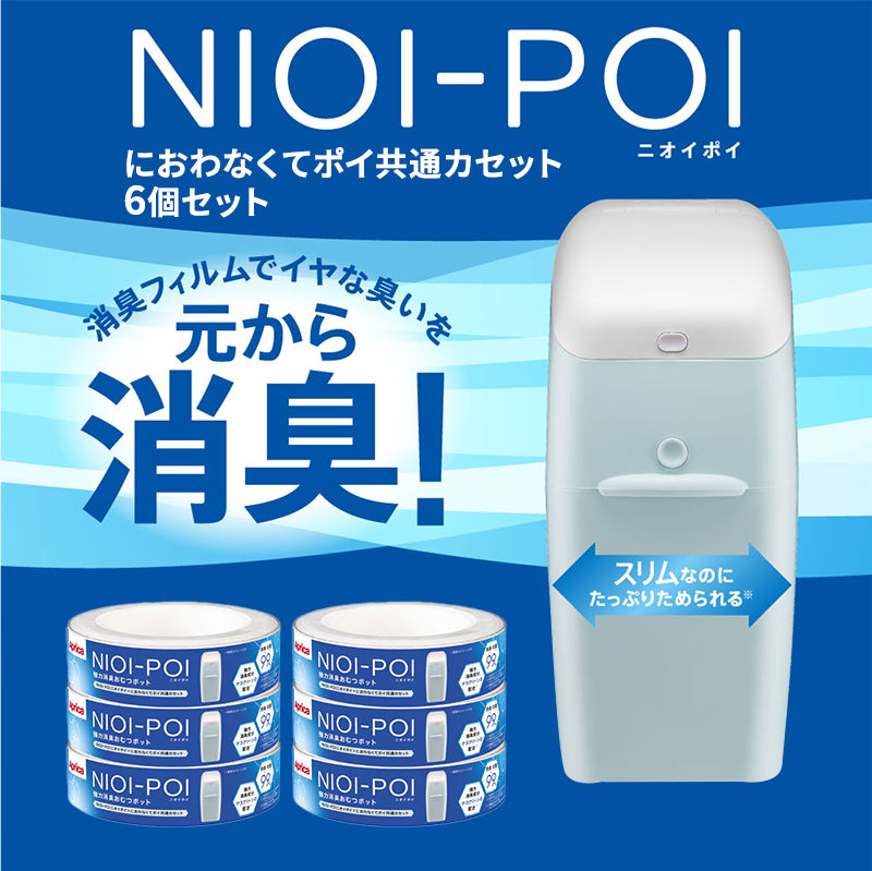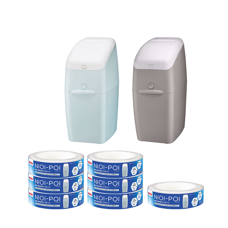 アップリカ 強力消臭おむつポット ニオイポイ (カセット1個付) + におわなくてポイ共通カセット (6個パック) セット