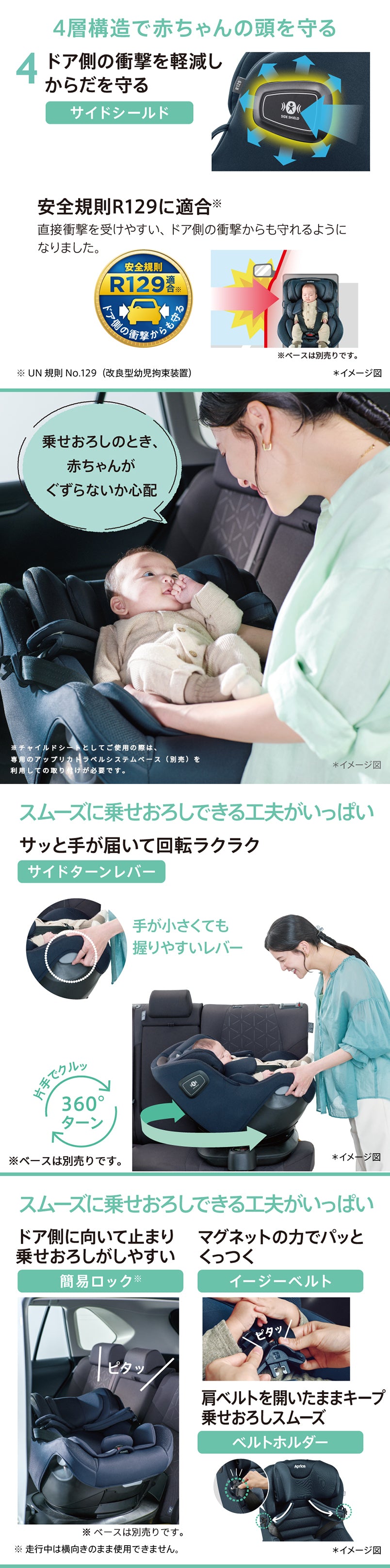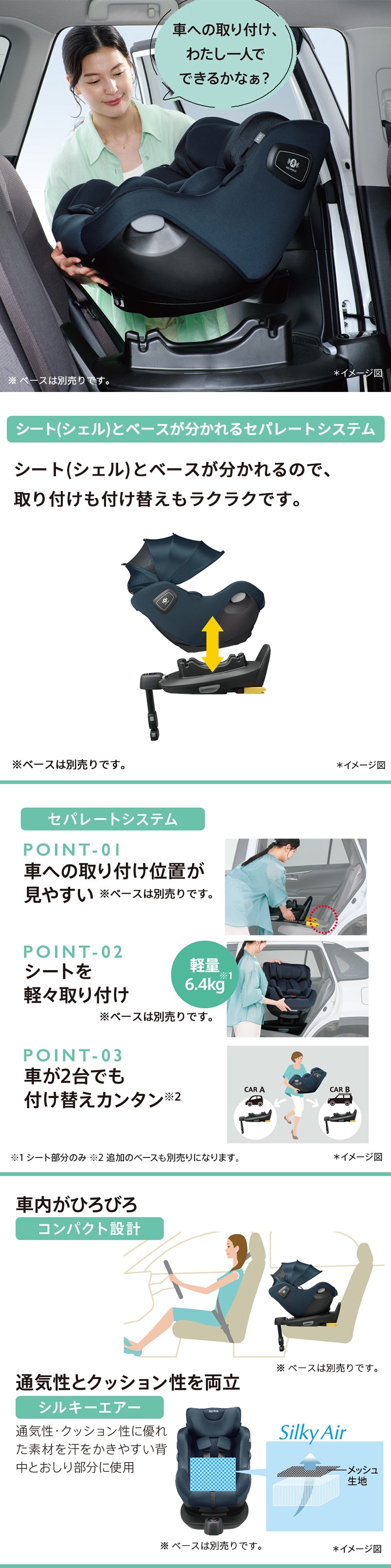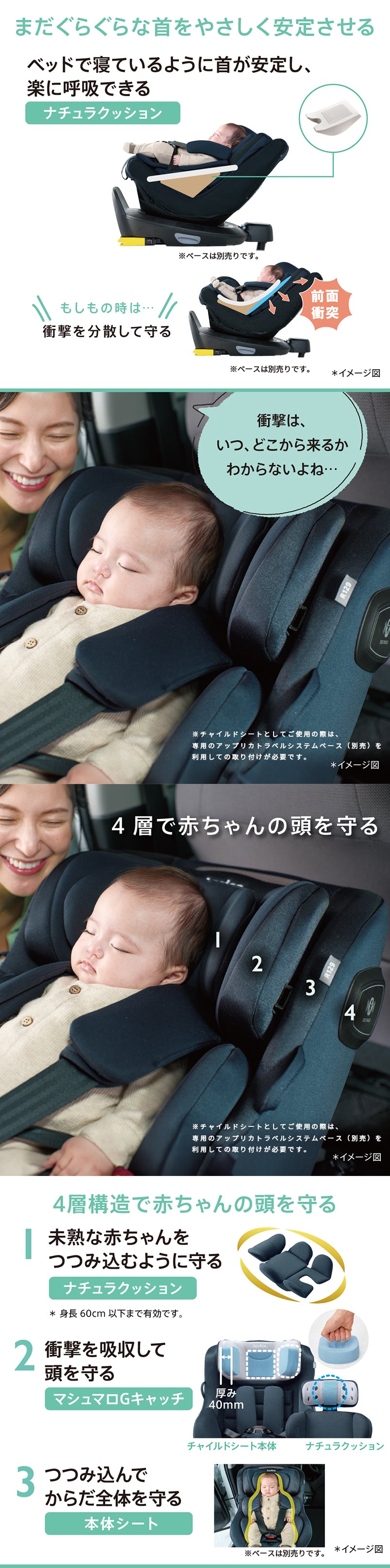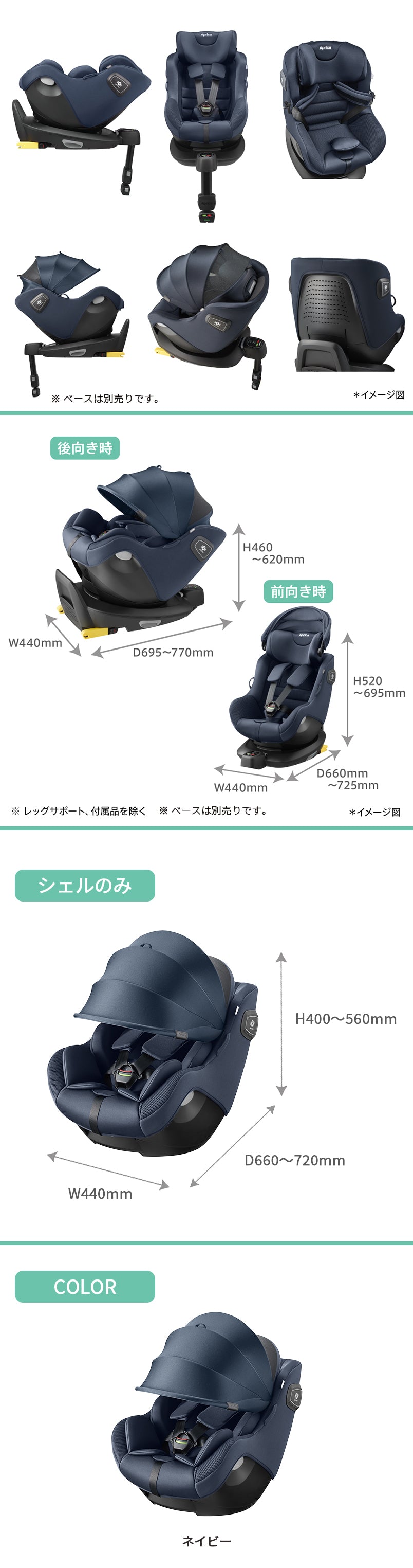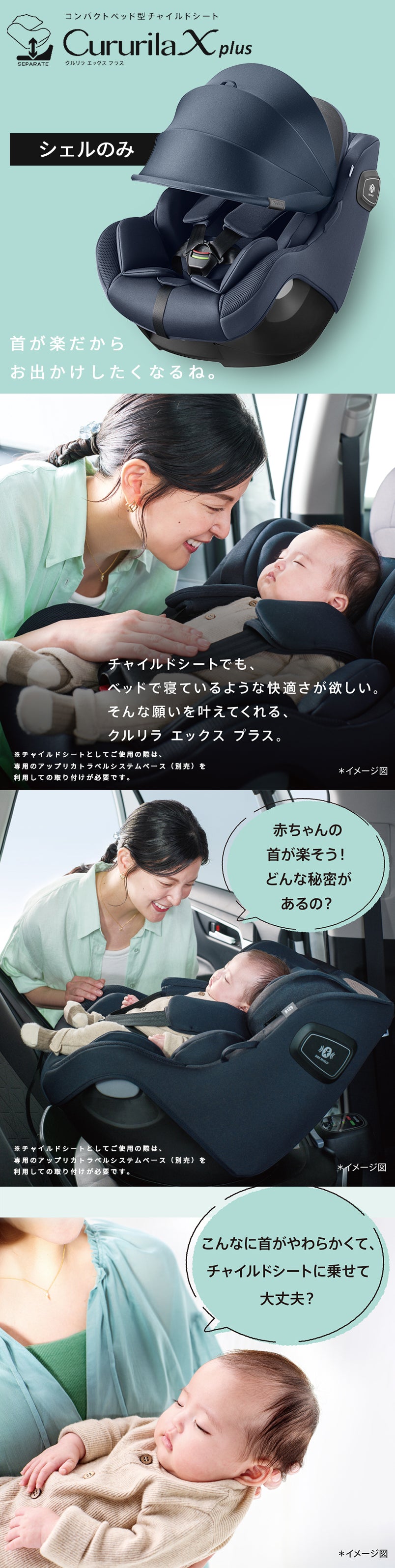 ※クルリラ エックス プラスのシェル本体のみの販売。 チャイルドシートとしてご使用の際は、専用のアップリカトラベルシステムベース(別売)を利用しての取り付けが必要です。 |