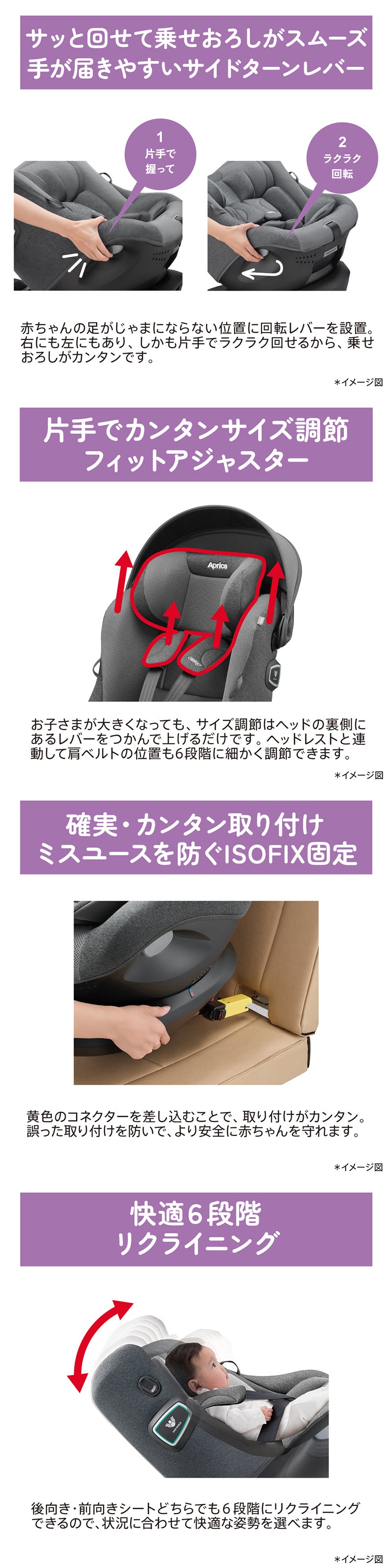 もしもの衝撃から頭を守る。安全性・快適性・操作性を兼ね備えた新安全規則R129適合の回転型チャイルドシート
