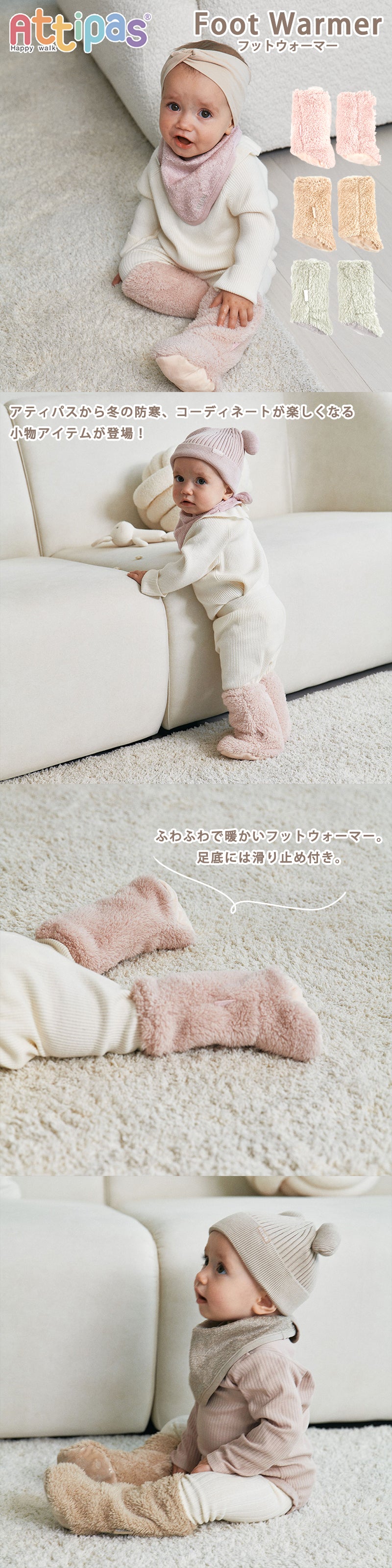 赤ちゃんの足を日々研究しているアティパスから、ついに冬の防寒小物アイテムが登場!
