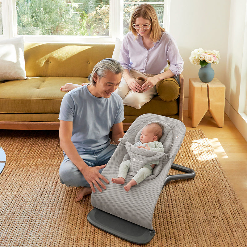 抱っこのような心地よさを叶える、エルゴベビーのevolve バウンサー。待望のメッシュ生地が登場! 首すわり前のお子さまを、頭からお尻まで優しくサポートするインサート付き。 大きくなったらチェアモードにチェンジして長くお使いいただけます。 足元のペダルでリクライニング操作でき、シートの洗濯も可能。 お子さまに安心感を、パパママの生活にちょっとしたゆとりをもたらします。 家事や仕事、趣味などずっと抱っこはしてあげられない時間に バウンサーが代わりに『抱っこ』 お互いの様子も見えて安心 おうちの中での抱っこはevolve バウンサーにおまかせ ・首すわり前から使える 専用のインサートがお子さまの体をしっかりサポート クッションの厚みや生地の切り替えで頭からおしりまでお子さまの体をやさしくつつみ込み、まるで抱っこされているかのような心地よさ ・成長に合わせて長く使える バウンサーを卒業したらチェアモードにチェンジ 腰掛けやすいシートと安定感のあるフレームはお子さまが大きくなっても使いやすく大活躍 どの月齢でも快適な姿勢で使えます ・シートは取り外して洗濯できるので汚れても安心 |