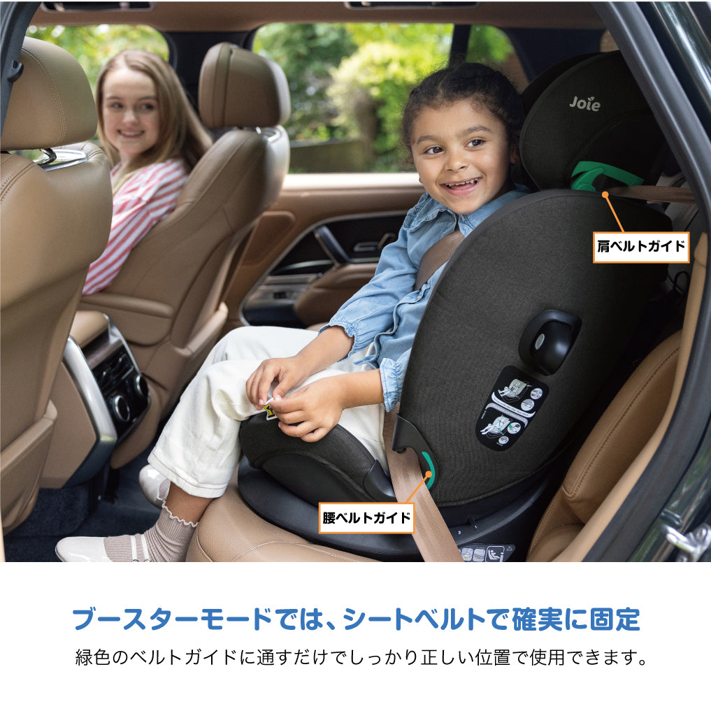 ハーネスモード:ISOFIX+トップテザーベルト ブースターモード:自動車の3点式シートベルト(ISOFIXの併用可能) |