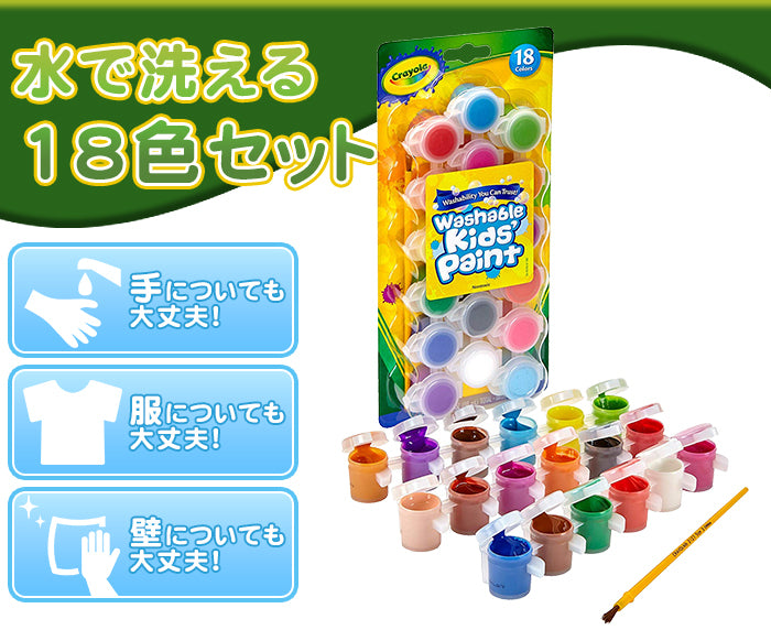 クレヨラ crayola 水で落とせる キッズ絵の具 18色セット ミニセット ブラシ付き
