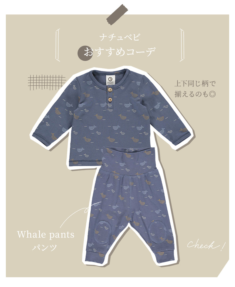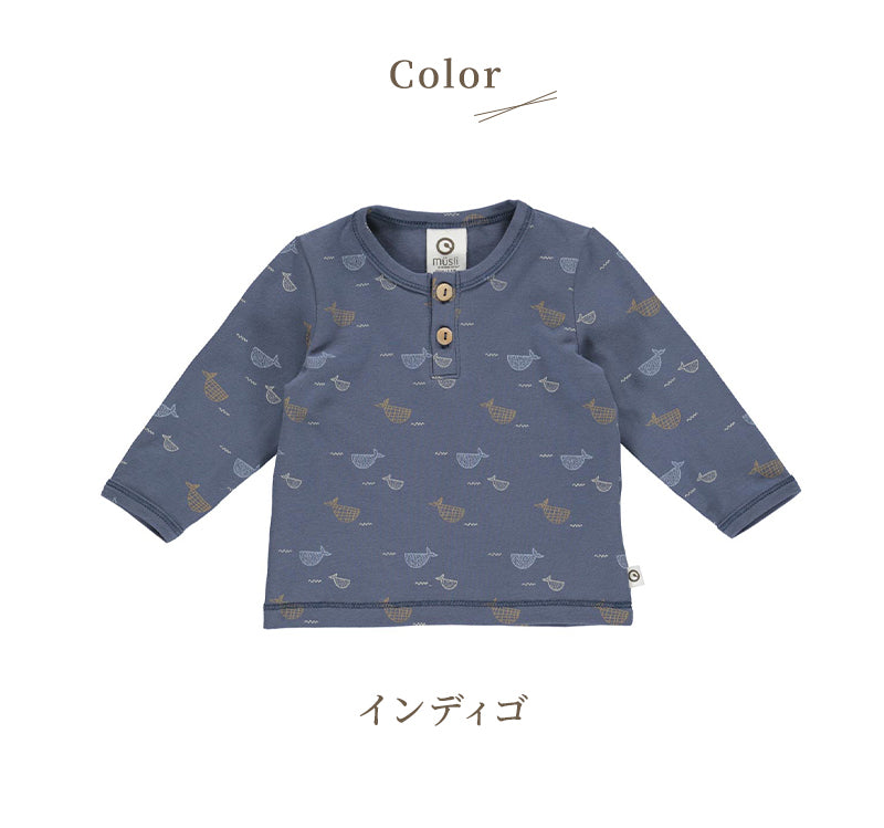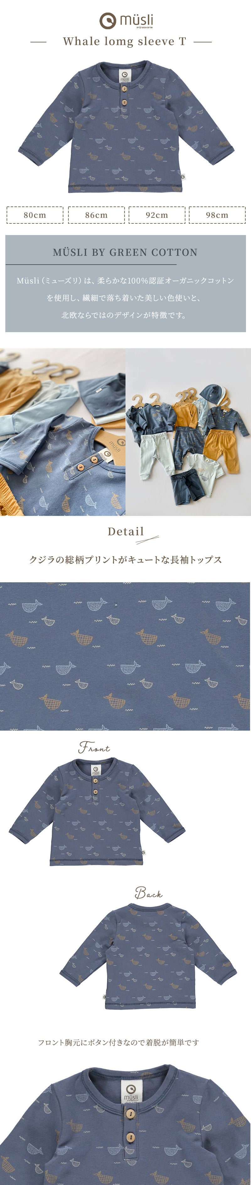 グリーンコットン Musli オーガニックコットン クジラ 長袖 トップス WHALE top 80~98cm