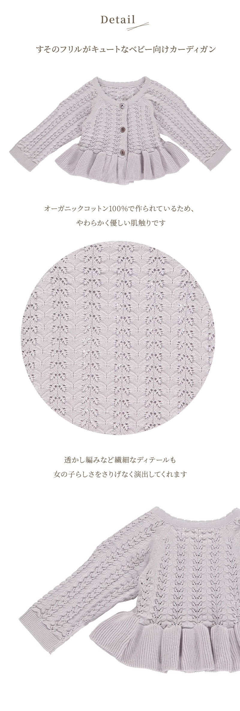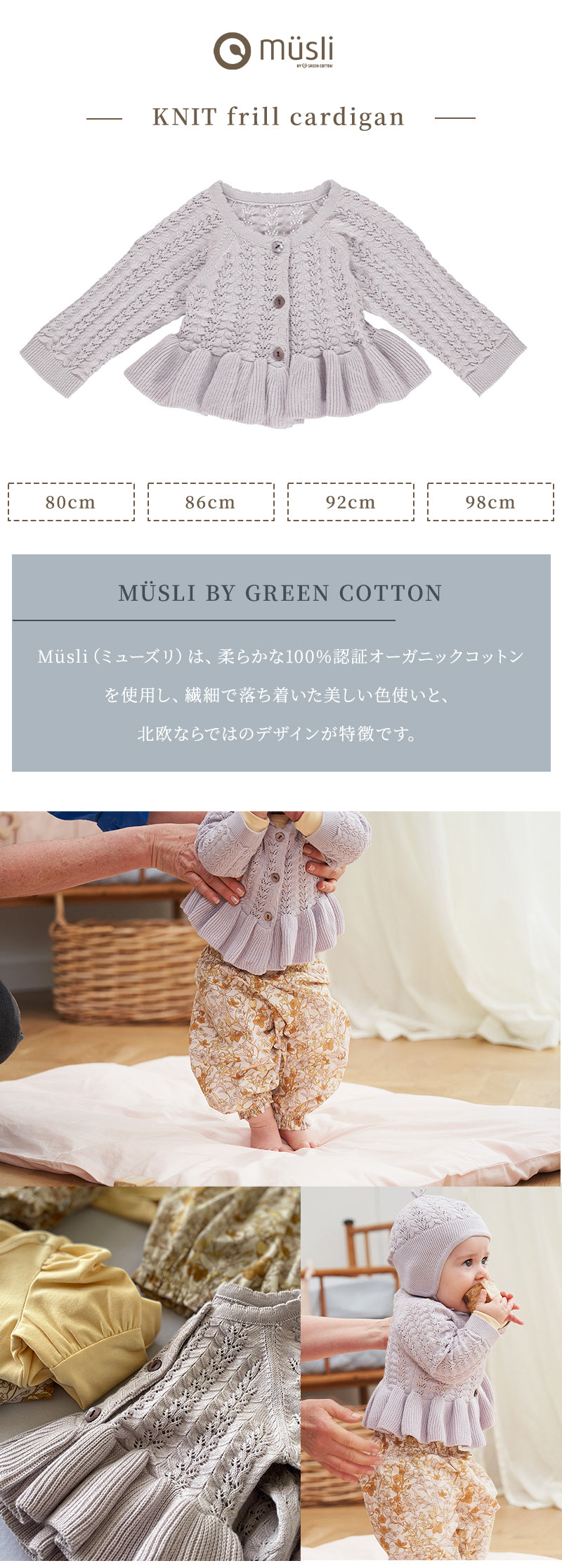 グリーンコットン Musli オーガニックコットン ニット フリル カーディガン KNIT cardigan 80~98cm