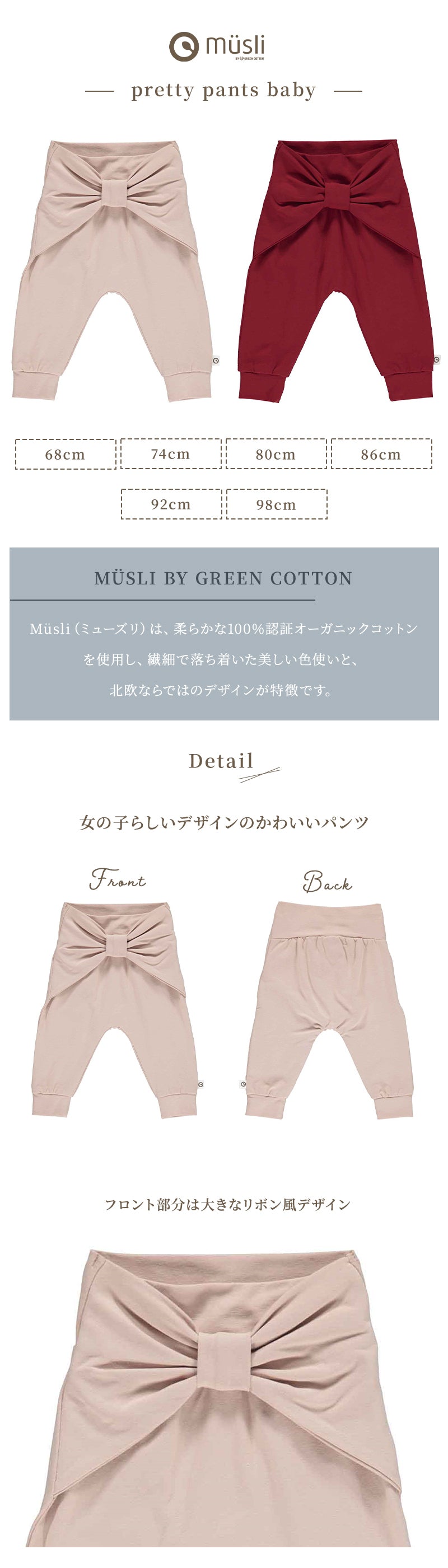 グリーンコットン Musli オーガニックコットン パンツ 68~98㎝ Cozy me pretty pants baby