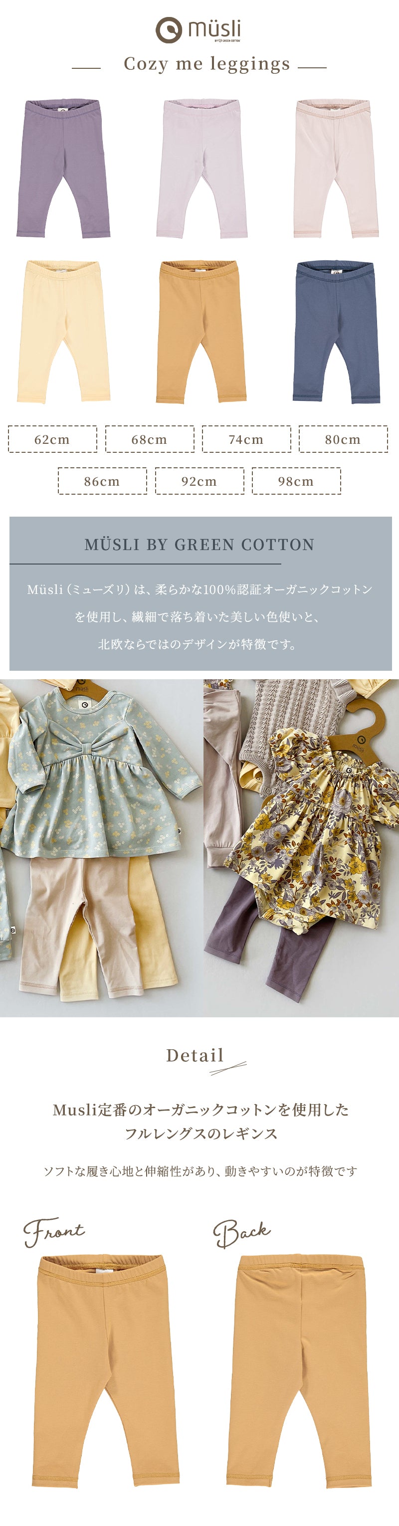グリーンコットン Musli オーガニックコットン レギンス Cozy me leggings 80~86cm