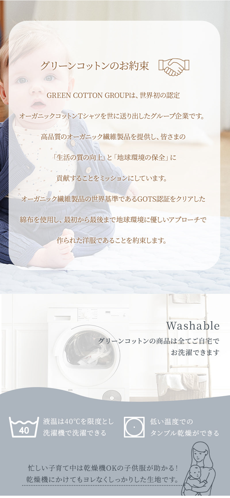 | オーガニックコットン95%・リサイクルポリエステル5% (GOTSオーガニック認証取得) |