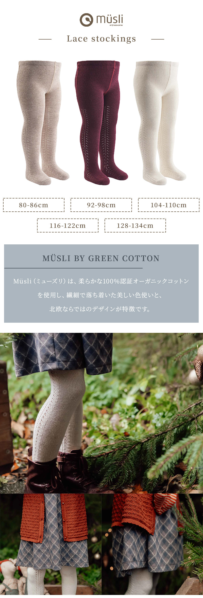グリーンコットン Musli オーガニックコットン レースストッキング 80~98㎝ Lace stockings