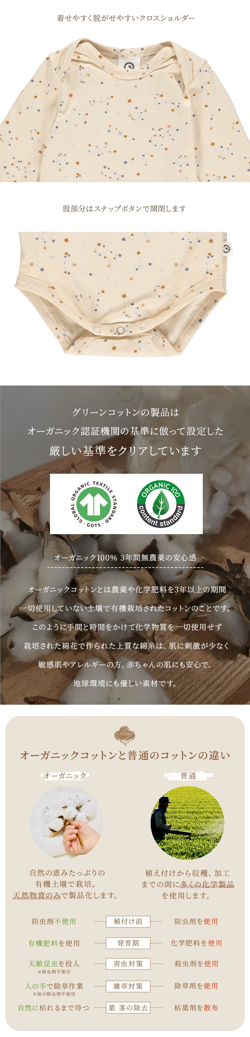 | オーガニックコットン95%・エスラタン5% (GOTSオーガニック認証取得) |
