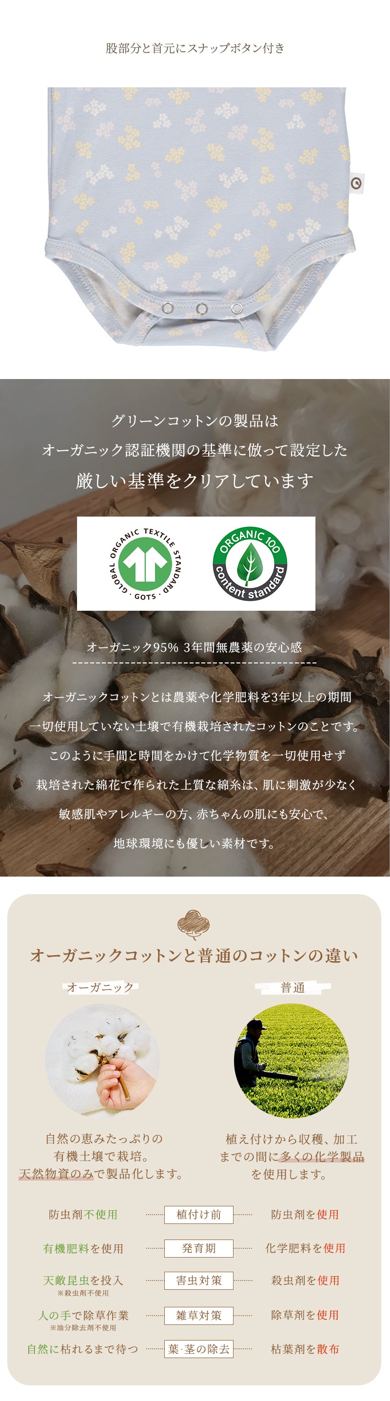 | オーガニックコットン95%・エラスタン5% (GOTSオーガニック認証取得) |
