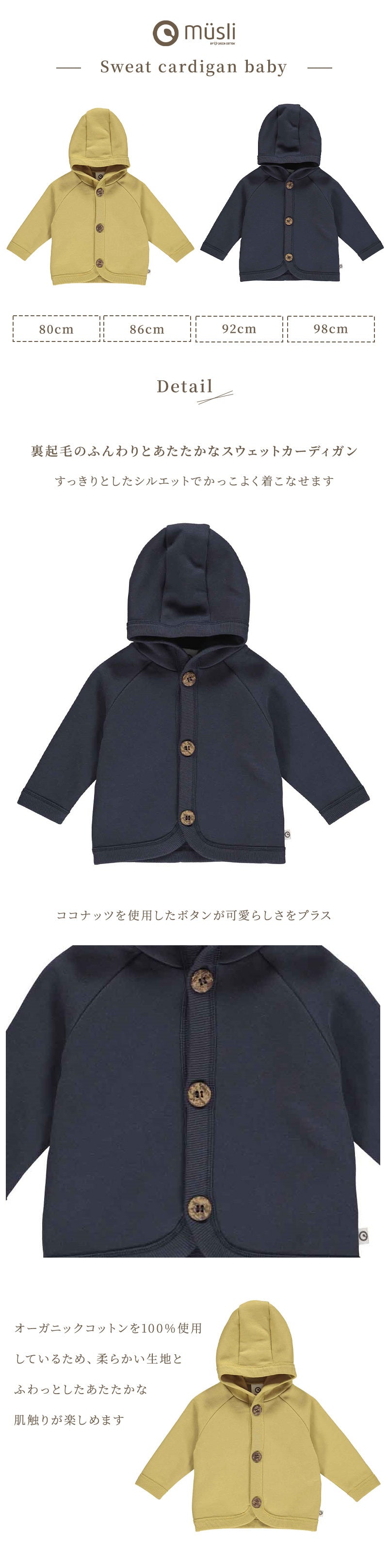 グリーンコットン Musli オーガニックコットン 80~98㎝ Sweat cardigan baby