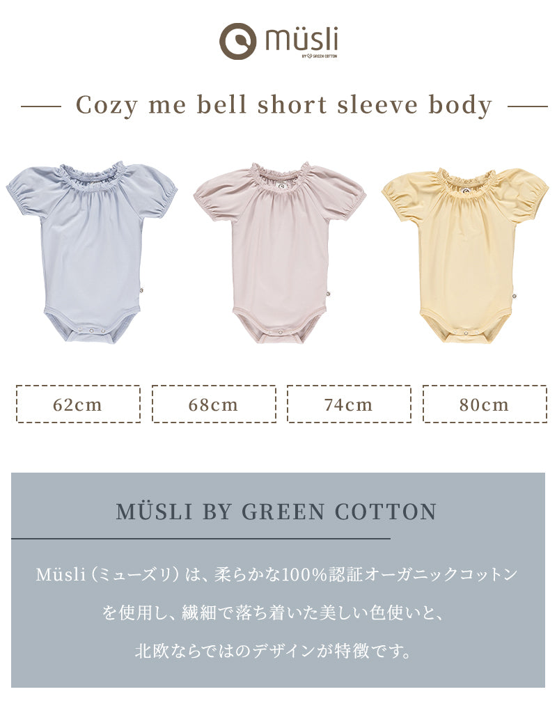 グリーンコットン Musli Cozy me bell ベルスリーブ 62~80cm