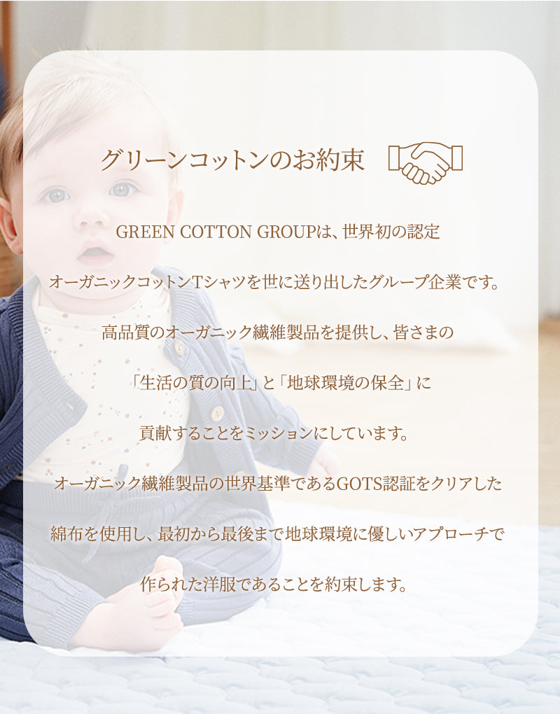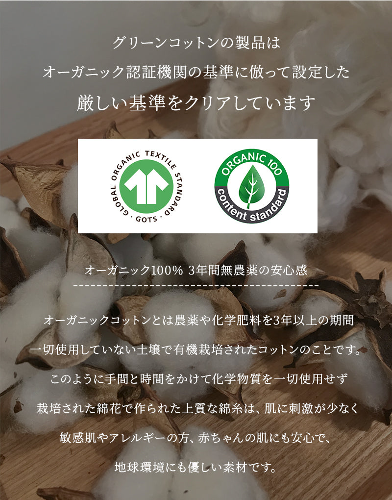 オーガニックコットン95%・リサイクルポリエステル5% (GOTSオーガニック認証取得) |