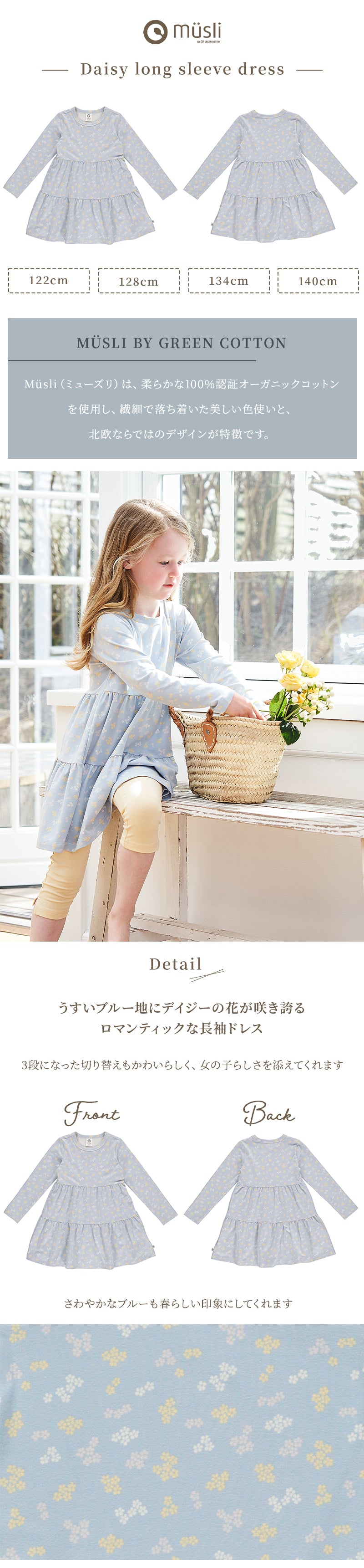 グリーンコットン Musli Daisy long sleeve dress ブリージー 122~140cm