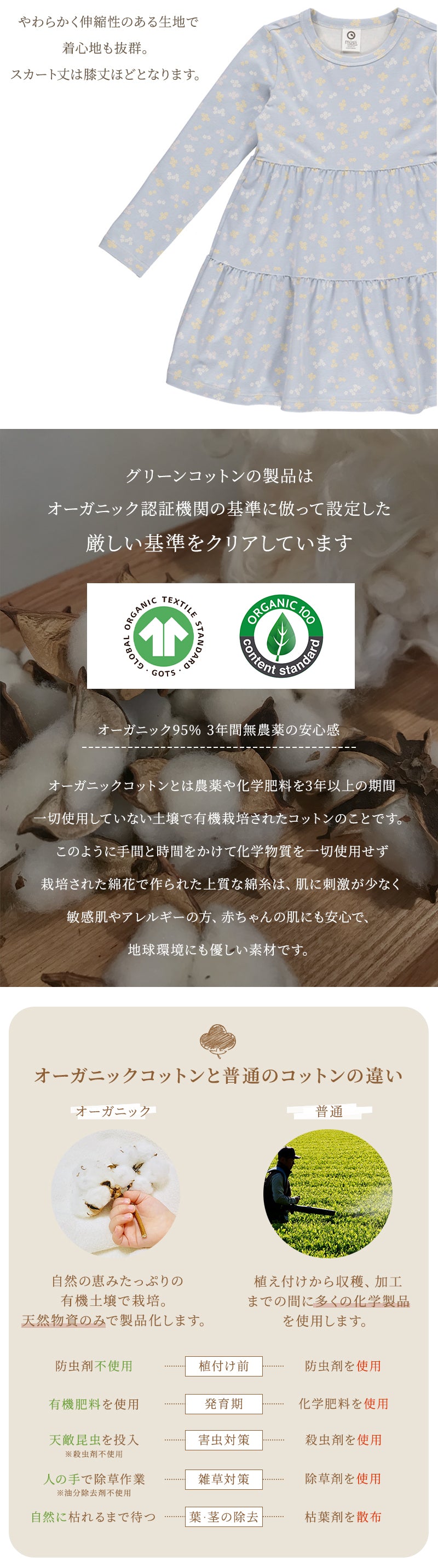 | オーガニックコットン95%・エラスタン5% (GOTSオーガニック認証取得) |