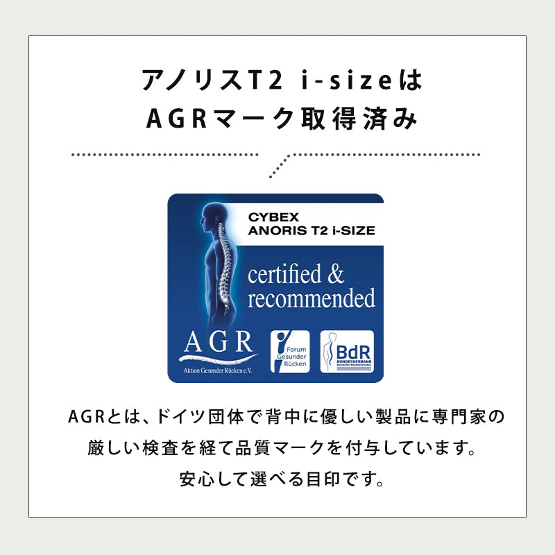 エアバッグを内蔵する、革新的な前向きチャイルドシート、アノリスT2 i-Size。 お子さまの安全に関する技術革新において世界をリードするアノリスシリーズは、ドイツ自動車連盟「ADAC」のテストで非常に優秀な評価を獲得。 革新的なエアバッグ テクノロジーにより、衝突の際に高い安全性能を発揮し、衝撃からお子さまを守ります。 ※アノリスシリーズの前モデルは、2022年ADACテストで過去最高の優れた評価「非常に良い(gut 1.5)」を獲得。 エアバッグを内蔵することで、インパクトシールドをよりコンパクトに。 正しくフィッティングしても、お子さまが安全にシートに座ったまま、快適に動けるスペースが確保されています。 また、前向きの姿勢により足を伸ばすことができ、長距離の移動でもリラックスできます。 負荷なく装着、快適にフィットして固定 8段階の位置調節が、ワンクリックで可能となるインパクトシールドは、ハーネスベルトよりも簡単に正しく装着できるため、お子さまの乗せ降ろしが驚くほど楽に。 お子さまの体とインパクトシールドとの間には、手のひら1枚分の空間を持たせて調節するので、腹部を圧迫することなく正確にフィットし、 しかもお子さまはチャイルドシートに縛り付けられず、体を動かすことができます。 7歳頃まで使用可能で、より長いご使用で、より長く安全を確保できます。 |