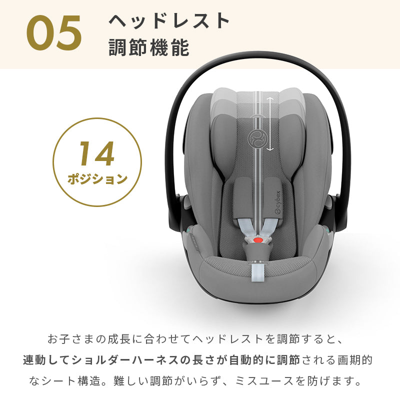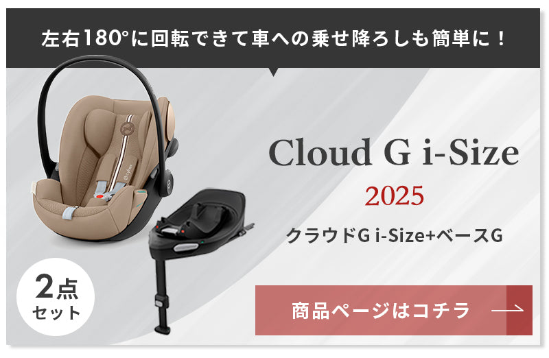 CYBEX(サイベックス)とは サイベックスの創設者であり2人の子を持つ父でもあるMartin Pos (マーティン・ポス)は、親が愛着を感じ、 本当に楽しんで使えるベビー・子供用品を創りたいと考えました。 彼はそれを、旧来の甘すぎるベビーデザインから切り離し、全く異なったものにしたいと考えたのです。 会社設立当初から、「Safety(安全性)・Design(デザイン)・Function(機能性)に革新をもたらす」という信条を、すべての商品開発の核とし、 一般的な水準の上をゆく安全性と品質、そして明白なデザインは、優れた機能性とともに相乗効果的な価値を生み出しました。 ヨーロッパの一流のエンジニア達、国際的なデザイナー達はもちろん、ライフスタイルのストラテジストらを起用することによって、サイベックスは、 「モダンで革新的な育児用品の象徴」となるまでに成長。 今や世界中のパパママに愛されるブランドの一つです。 【Cloud G i-Size(クラウド G アイサイズ)】 クラウドGの機能 ◎モジュラーシステム ◎エアベンチレーションシステム ◎リクライニングバックレスト(2ポジション) ◎別売りのベースで180°回転 別売りの専用ベース(ベースG)を使用することで、左右のドア方向に180°回転させることができます。 お子さまの乗せ降ろしやベビーシートの脱着がより簡単に快適に行えます。 ※前向き装着での使用は不可となります。必ず後向き装着でご使用ください。 ※ベースGを使用しない場合はシートベルトでの固定となります。 ◎リニア・サイドインパクト・プロテクション ◎エクストララージ サンキャノピー ◎ヘッドレスト高さ調節機能(14ポジション) ◎取りはずし可能な新生児インレイ ※写真は一部共通のものを使用しています。 ※商品のお色はお使いのモニターやご覧になる環境により、カラーの見え方に差がでる場合がございます。 そのため、実際とは若干異なる場合がございますので、ご了承くださいませ。 |