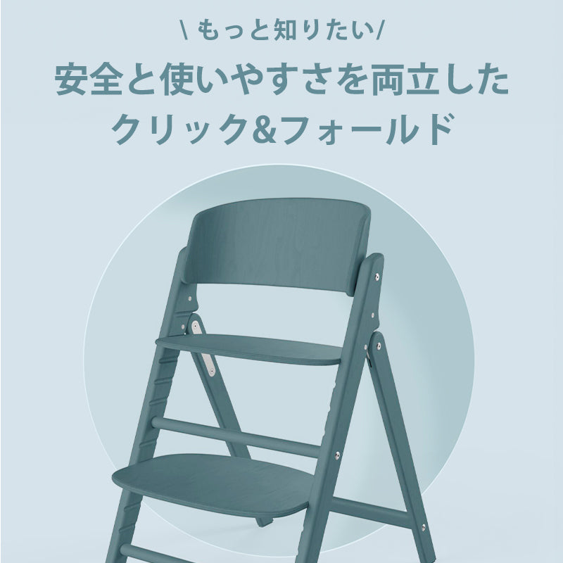 折りたためるハイチェア「クリック&フォールド」 モダンな美しさと、洗練されたデザイン サスティナブルな素材のビーチウッドを使用した、匠の技が生み出すアイコニックなデザインのハイチェア。 2つのボタンを押して、素早く簡単に折りたためるので、気軽に収納でき場所をとりません。 成長に合わせて細かく調節可能で、3歳頃から大人まで長くお使いいただけます。 |