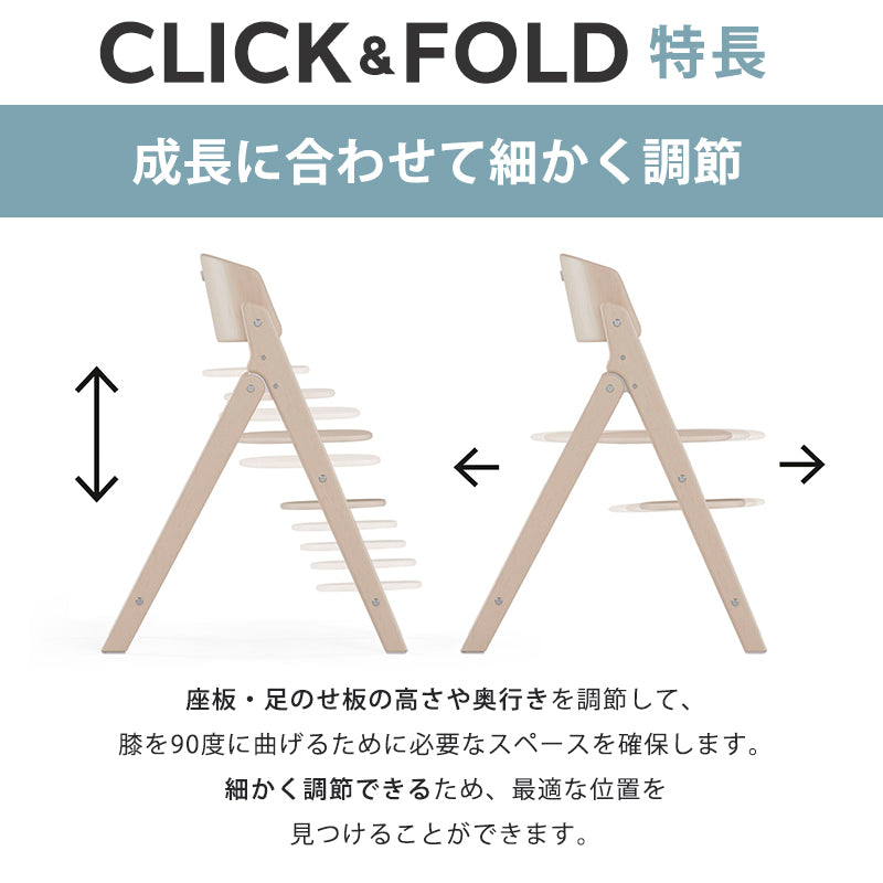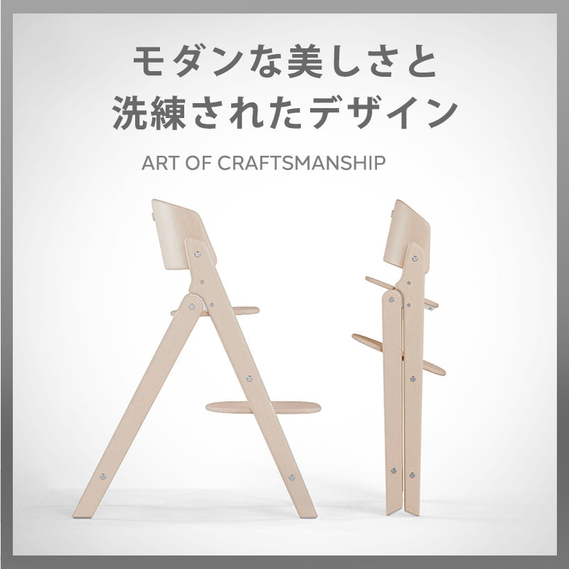 折りたためるハイチェア「クリック&フォールド」 モダンな美しさと、洗練されたデザイン サスティナブルな素材のビーチウッドを使用した、匠の技が生み出すアイコニックなデザインのハイチェア。 2つのボタンを押して、素早く簡単に折りたためるので、気軽に収納でき場所をとりません。 成長に合わせて細かく調節可能で、3歳頃から大人まで長くお使いいただけます。 |