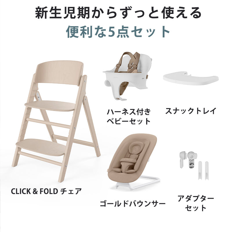 クリック&フォールド チェア、ハーネス、ベビーセット、スナックトレイ |
