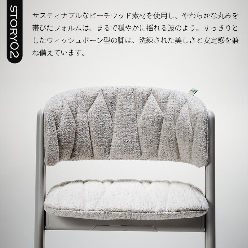 滑らかなフォルムと洗練されたデザインで、赤ちゃんの頃から正しい姿勢をサポート。