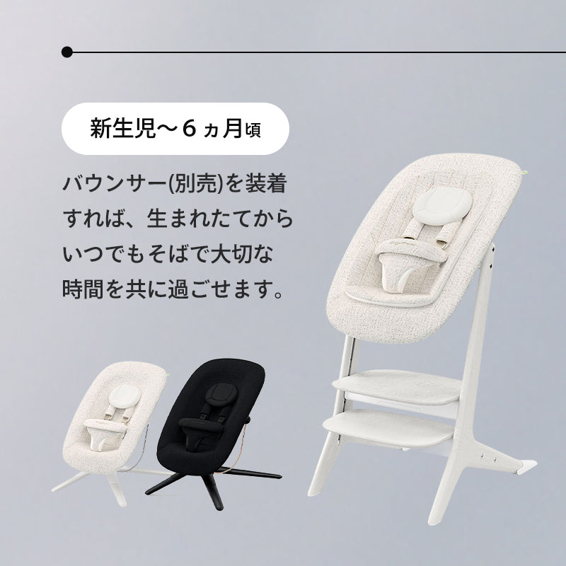プラチナムバウンサーを取り付ければ、新生児からいつでも家族のそばで過ごせます。
