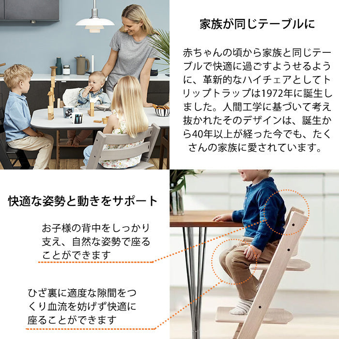 ※トリップトラップの座面を1段目に設定した状態でご使用ください。ベビーセットに対応するダイニングテーブルの高さは72~76cmです。
