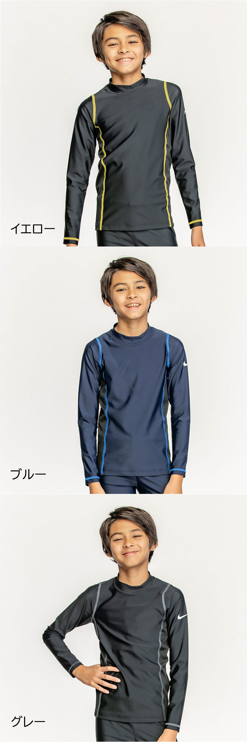 ナイキ NIKE SS24 BOYS ロングスリーブ UV ハイドロガード グレー/ブルー/イエロー 1991091