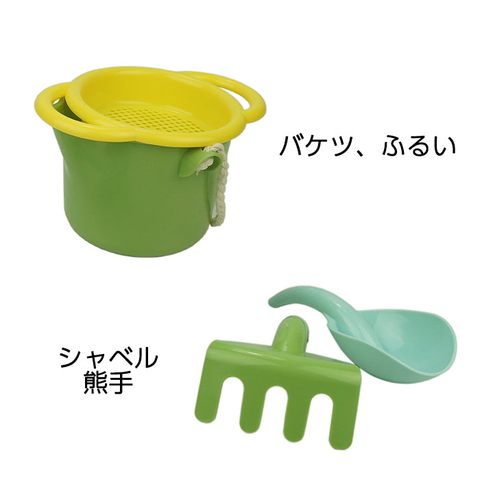 セット内容 バケツ、ふるい、シャベル、熊手 各1点、砂型4種