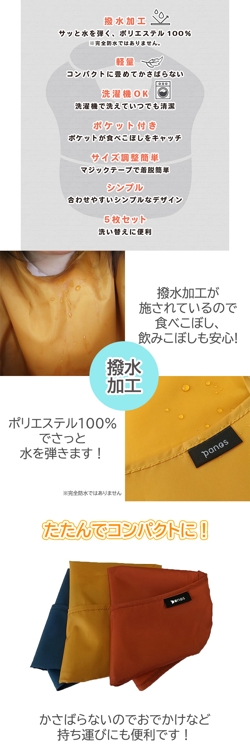 | パッケージ:(約)幅30×高さ22×奥行1cm 本体:1枚あたり(約)横23-29.5×全長32×首周り24-29cm, 首下22cm,ポケット9.5cm |