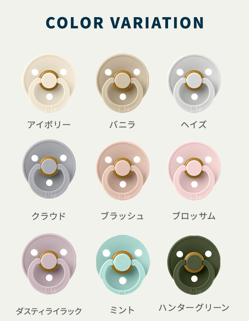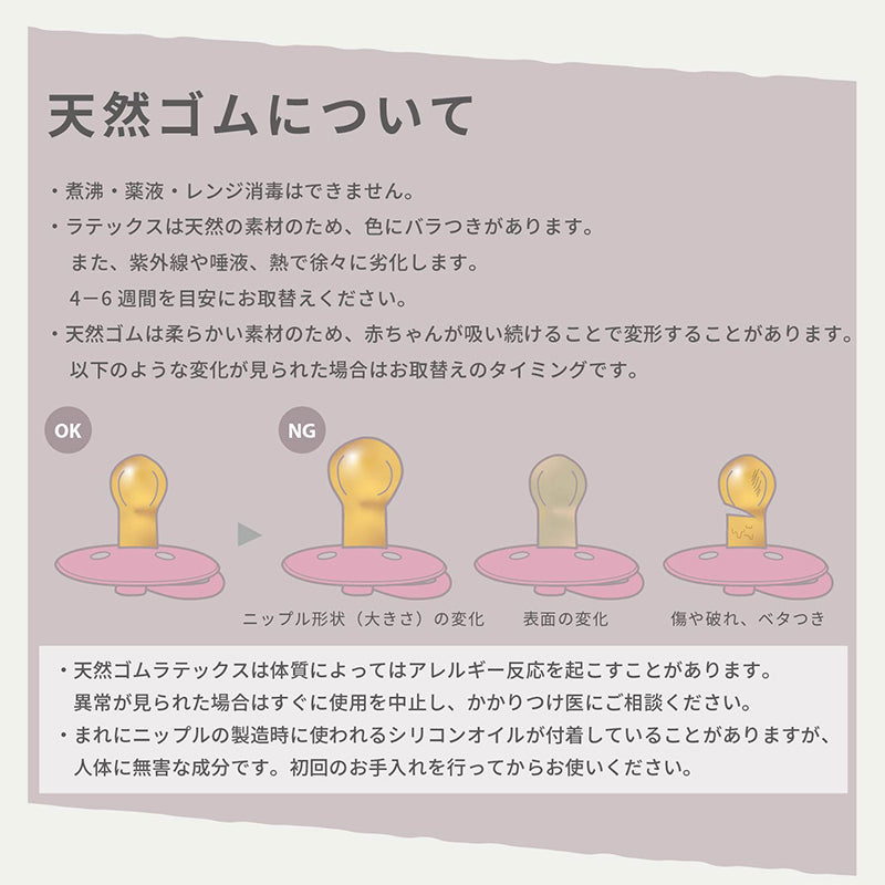 ※メーカー推奨使用期間として衛生上の理由によりbibs 天然ゴム製のおしゃぶりは4~6週間ごとにお取り替えください。