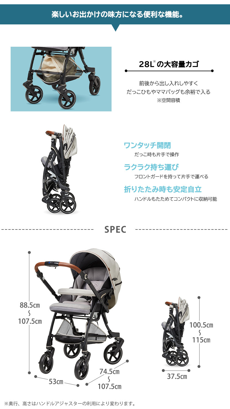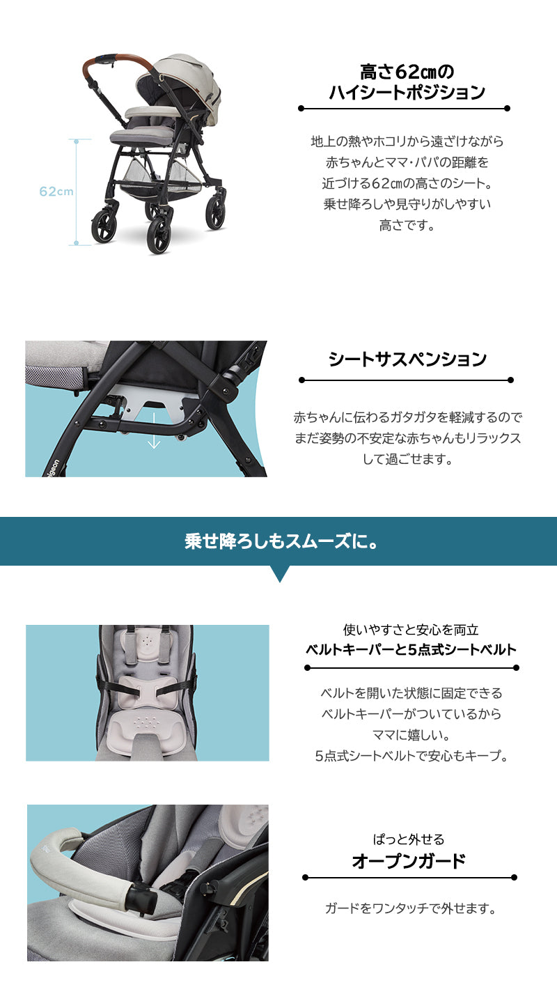 ピジョン ベビーカー ノートアール NBO-R シェルグレイ/ソールブラック