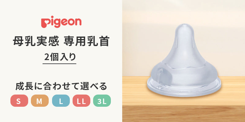 そのため、「母乳実感®」乳首は、赤ちゃんの発達に合わせた適切な量が飲めるように、乳首の吸い穴の形や大きさを変えて6サイズから選べるようにしています。