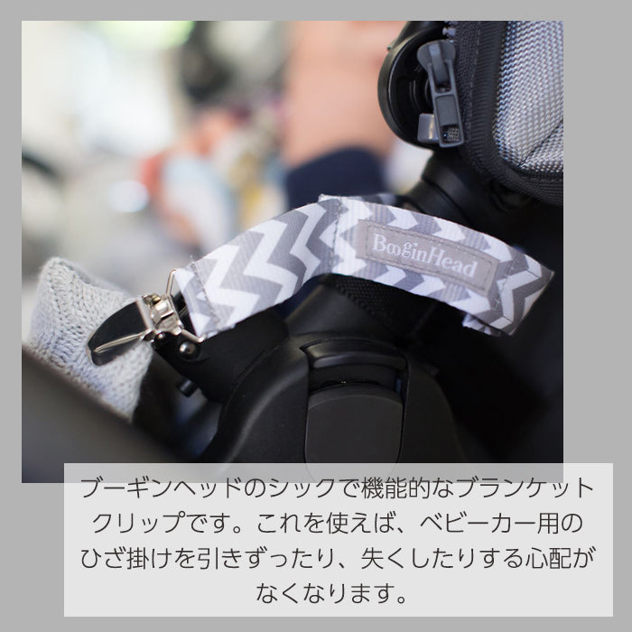 ブーギンヘッド ベビーカー用ひざ掛けクリップ グレー/ホワイトシェブロン