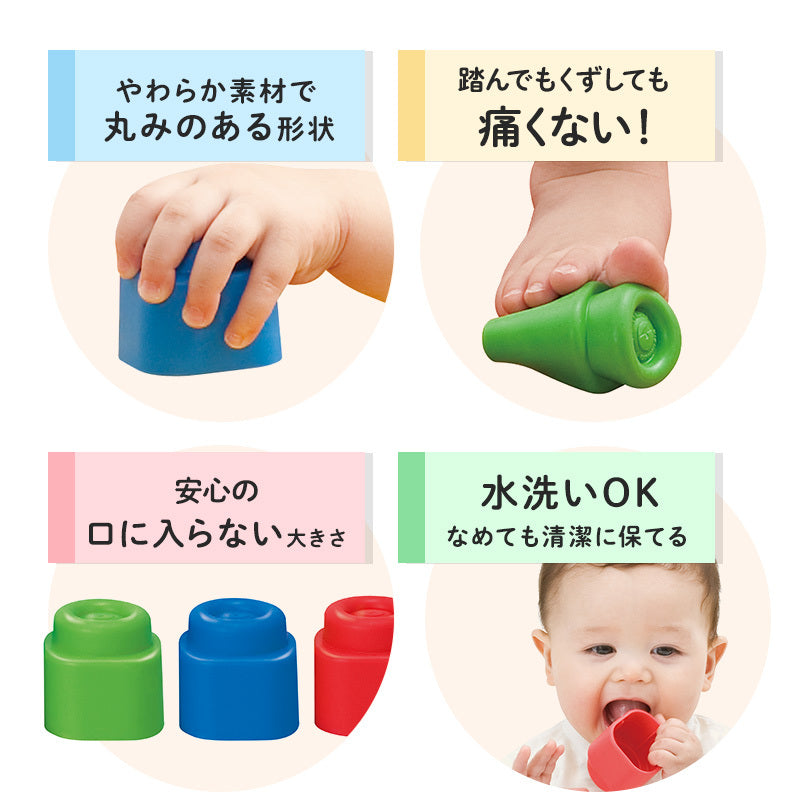 やわらかな素材&過度のない形状で、踏んでも崩してもいたくないので小さなお子さんでも楽しくブロック遊びが楽しめます。