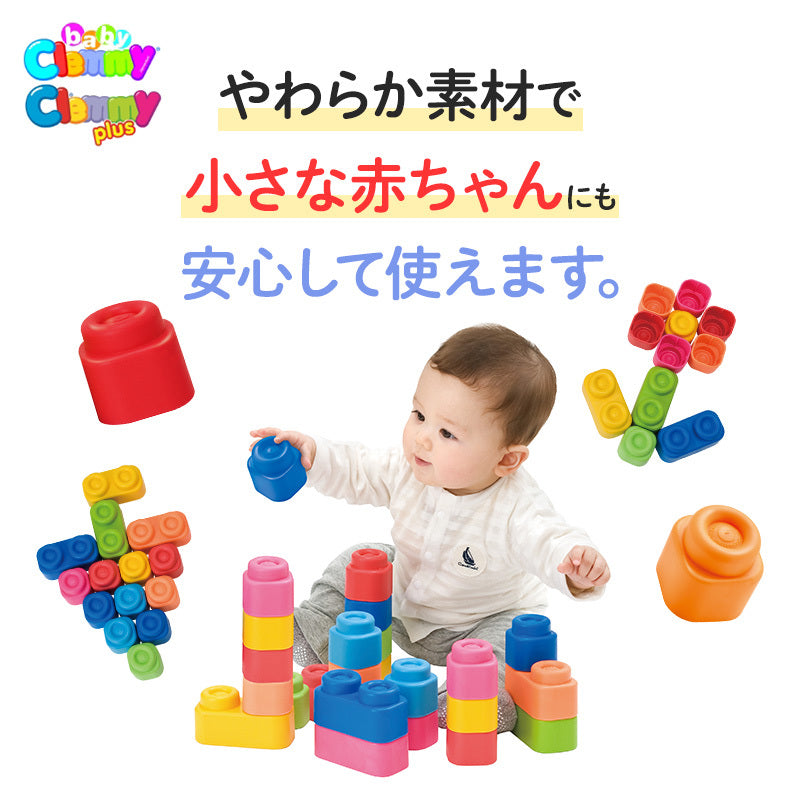 ベビークレミーは小さな手でもつかみやすく口に入らない大きめサイズで0~1歳の赤ちゃんにぴったりのシリーズ。 かみ合わせが甘いので積み上げたり崩したりしやすく、積み木のように楽しむことができます。 シングルブロックが入ったセットです。 収納や持ち運びに便利なファスナー付きのソフトバッグ入りです。 |