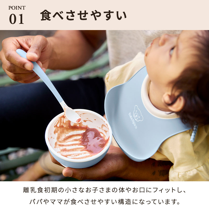 大人気べビービョルン食器セットから離乳食開始スタートにピッタリのフィーデイングセット(スターターセット)が登場 小さな体にもフィットするスモールベビースタイ、倒れにくく持ちやすいベビーボウル、 食べさせやすい長い持ち手のフィーデイングスプーンの3点が揃ったセット。 食洗器も対応可で、お手入れ簡単。 出産祝いはもちろん、お食い初めなどのギフトとしても最適です。 |