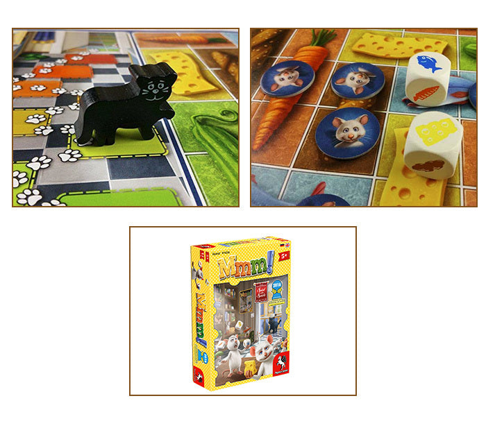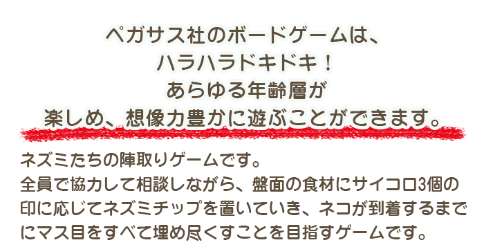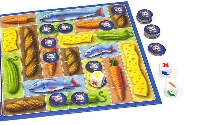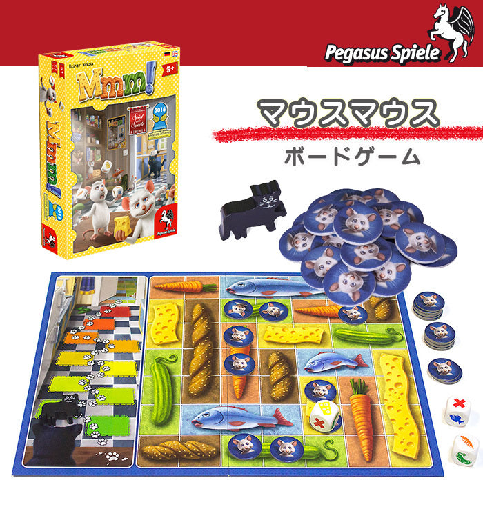 セット内容 ボード/マウスチップ56枚/サイコロ3個/ネコ1個/日本語説明書付き