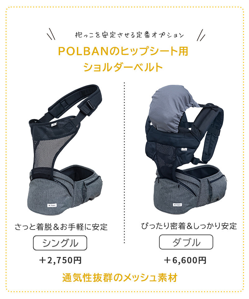 ヒップシート ・NEW ポルバン アドバンス ヒップシート ・NEW ポルバン ベーシック ヒップシート ・ポルバンモア ・シングルショルダー オールメッシュ ・シングルショルダーセット ・ダブルショルダー オールメッシュ ・ダブルショルダーセット |