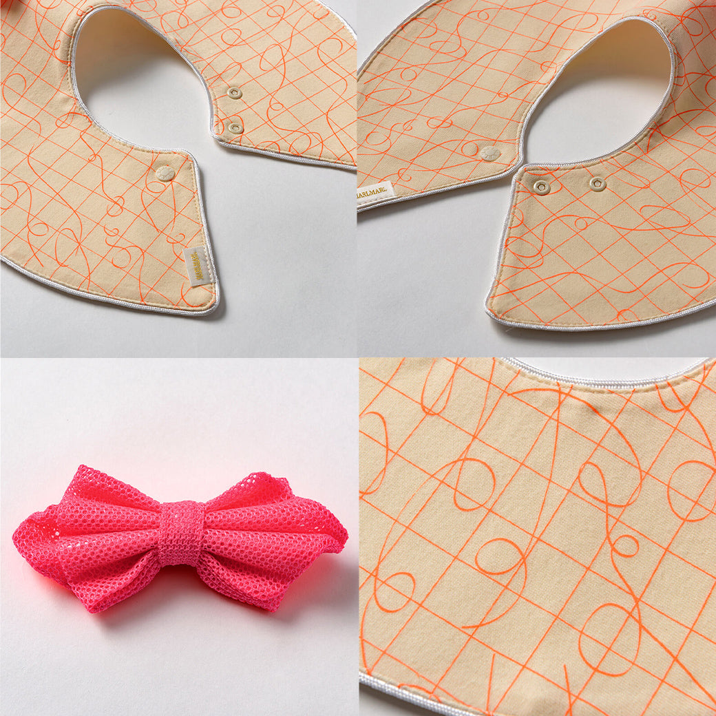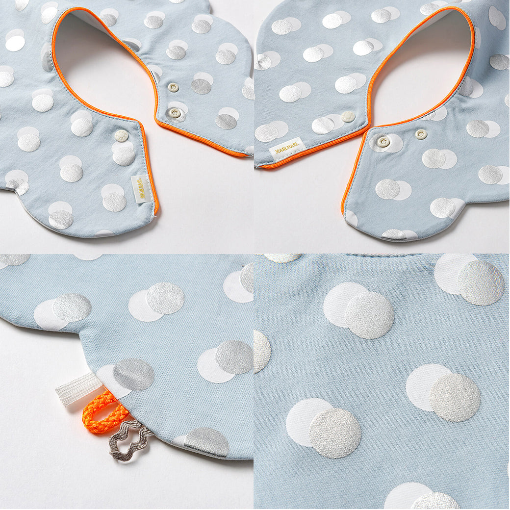 ※よだれのつたいもれ防止のため、一般的なスタイよりも、首回りが小さめのつくりになっています。