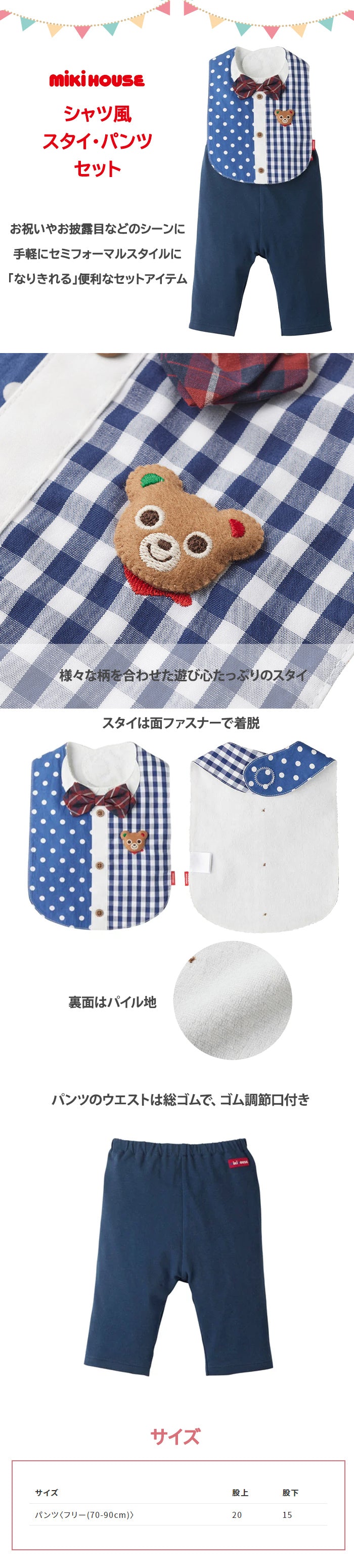 ミキハウス mikihouse シャツ風スタイ・パンツセット フリーサイズ (70-90cm)