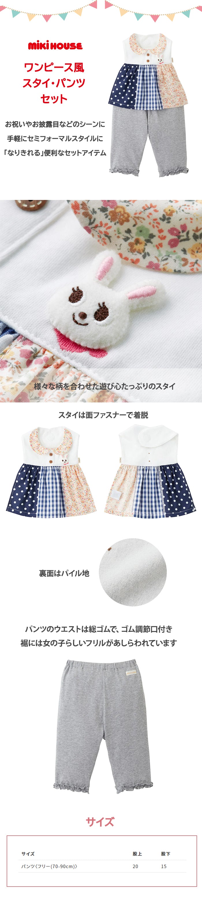 ミキハウス mikihouse ワンピース風スタイ・パンツセット フリーサイズ (70-90cm)