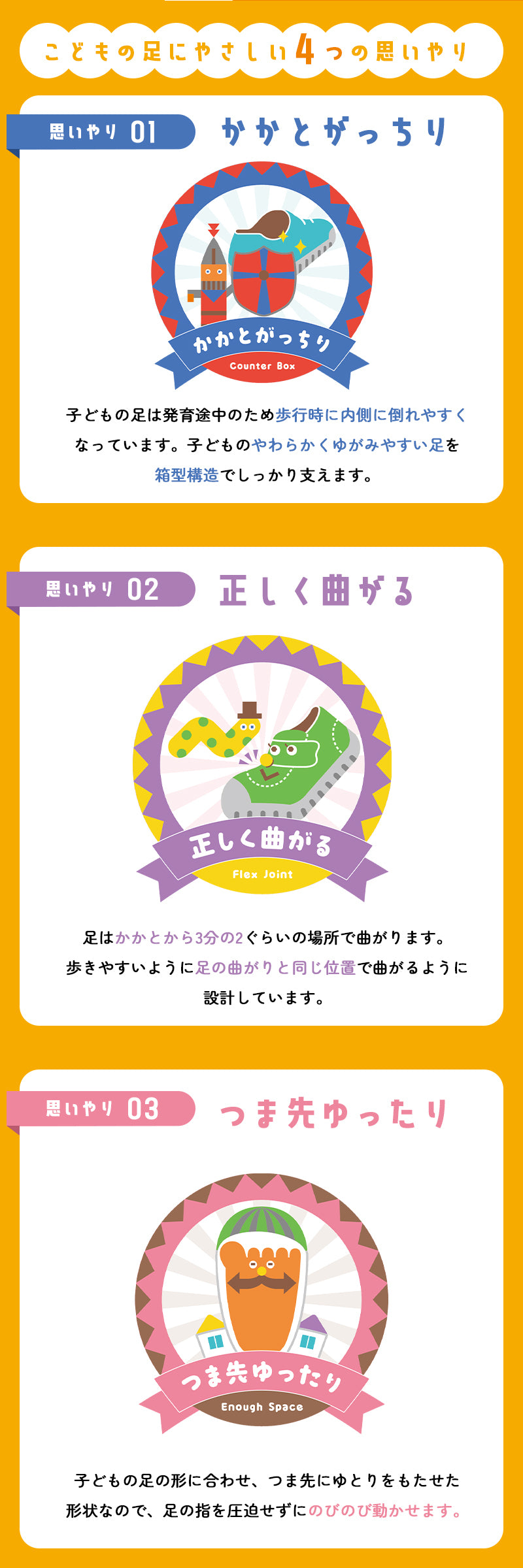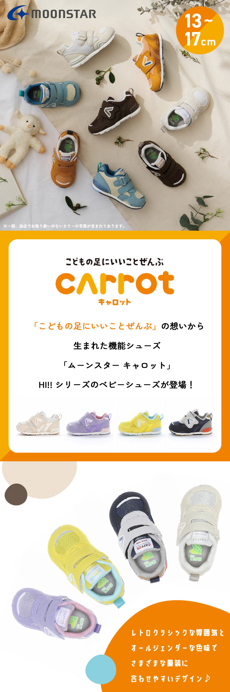 | 「こどもの足にいいことぜんぶ」の想いから生まれた機能シューズ「ムーンスター キャロット」HI!!シリーズのベビーシューズ。 ワンタッチで脱ぎ履きできる一本バンドタイプでとても楽ちん。 レトロクラシックな雰囲気とオールジェンダーな色味で様々な服装に合わせやすい一足です。 子どもの足の成長をサポートする「4つの機能(つま先ゆったり/カウンターボックス/フレックスジョイント/機能性カップインソール)」により、健やかな成長を促します。 重さは13.0cmで片足約90gです。 【つま先ゆったり】 つま先にゆとりを持たせた形状で、足の指を圧迫せずにのびのび動かせます。 【機能性カップインソール】 足裏になじみ、取り出して洗濯ができるので靴内を清潔に保てる中敷きです。 つま先部分に一般的なEVAスポンジより30%以上反発性をアップさせ衝撃吸収性能も兼ね備えた高反発スポンジを採用しており足ゆびの動きを促します。 また、中敷きの屈曲部を波型形状にすることで、靴の屈曲部がより曲がりやすいように設計されています。 かかと部分には硬質EVAパーツを使用しており、安定性を高めています。 【スタビライザー】 かかとに取り付けられた硬質のパーツが足のグラつきを抑え、着地時の安定性を保ちます。 【カウンターボックス】 子どもの柔らかくゆがみやすい足を箱型構造でしっかり支えます。 【フレックスジョイント】 足の曲がりと同じ位置で靴が曲がる設計で、足に余計な負担をかけません。 【カテキン】 天然緑茶を原料とした自然素材の「カテキン」を使用することで、優れた「抗菌」「防臭」効果を発揮します。 |