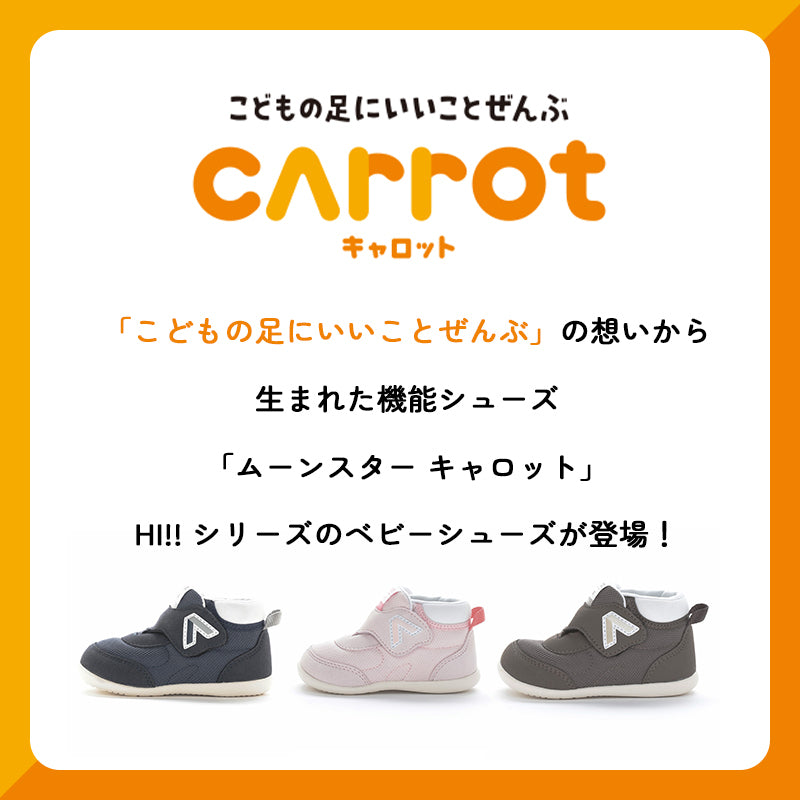 「こどもの足にいいことぜんぶ」の想いから生まれた機能シューズ「ムーンスター キャロット」HI!!シリーズのベビーシューズ。