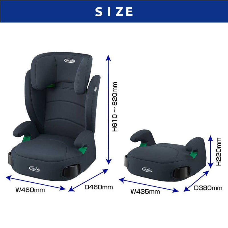 ブースターシートモード W460 x D460 x H610~820 (mm) ブースタークッションモード W435 x D380 x H220 (mm) |